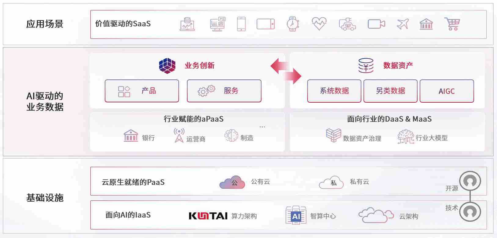 数字时代,,,围绕企业数字化转型的关键要素,,,z6com尊龙数码开创性的提出数云融合战略和技术体系框架,,,,着力在云原生、、数字原生、、、、AI原生和信创产业上架构产品和服务能力,,,,为处在不同数字化转型阶段的快消零售、、汽车、、、金融、、、医疗、、政企、、教育、、、运营商等行业客户提供泛在的敏捷IT能力和融合的数据驱动能力,,构建跨界融合创新的数字业务场景和新业务模式,,,,助力企业级客户建立面向未来的核心能力和竞争优势,,,全面推动社会的数字化、、、智能化转型升级。。。。